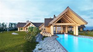 Проекты деревянных домов из оцилиндрованного бревна могут быть взяты за основу при строительстве дачных домов, гостевых домов, а также бань, жилых коммерческих комплексов. В основе строения находится традиционный, естественный, экологичный материал. Брёвна хвойных пород дерева, сосны или ели.